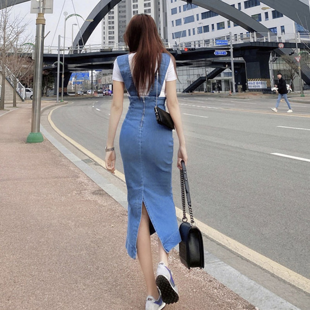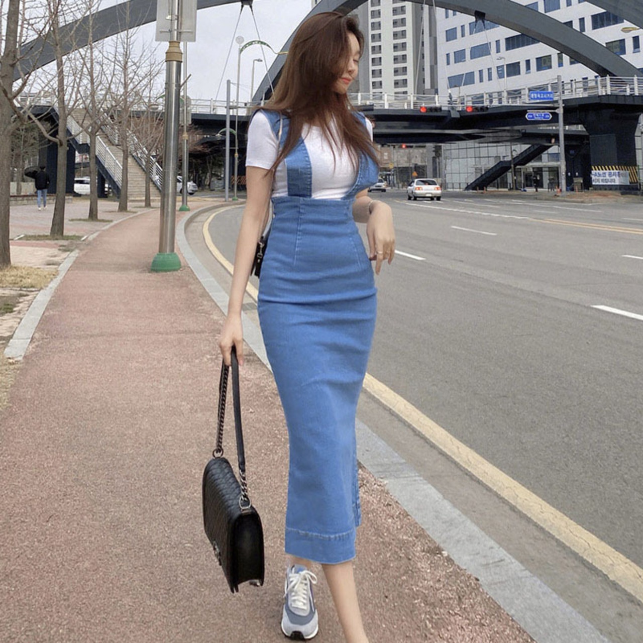 デニムスカート ジャンパースカート タイト ミモレ丈 ハイウエスト 春夏 大人カジュアル 10代 20代 30代 sk0283