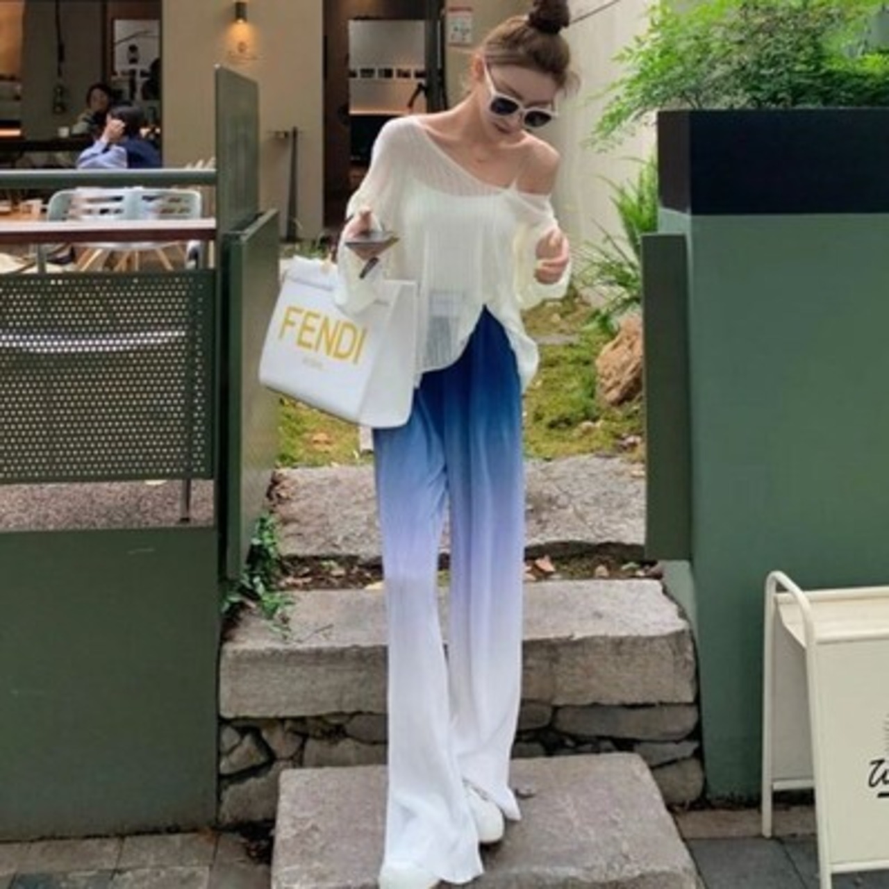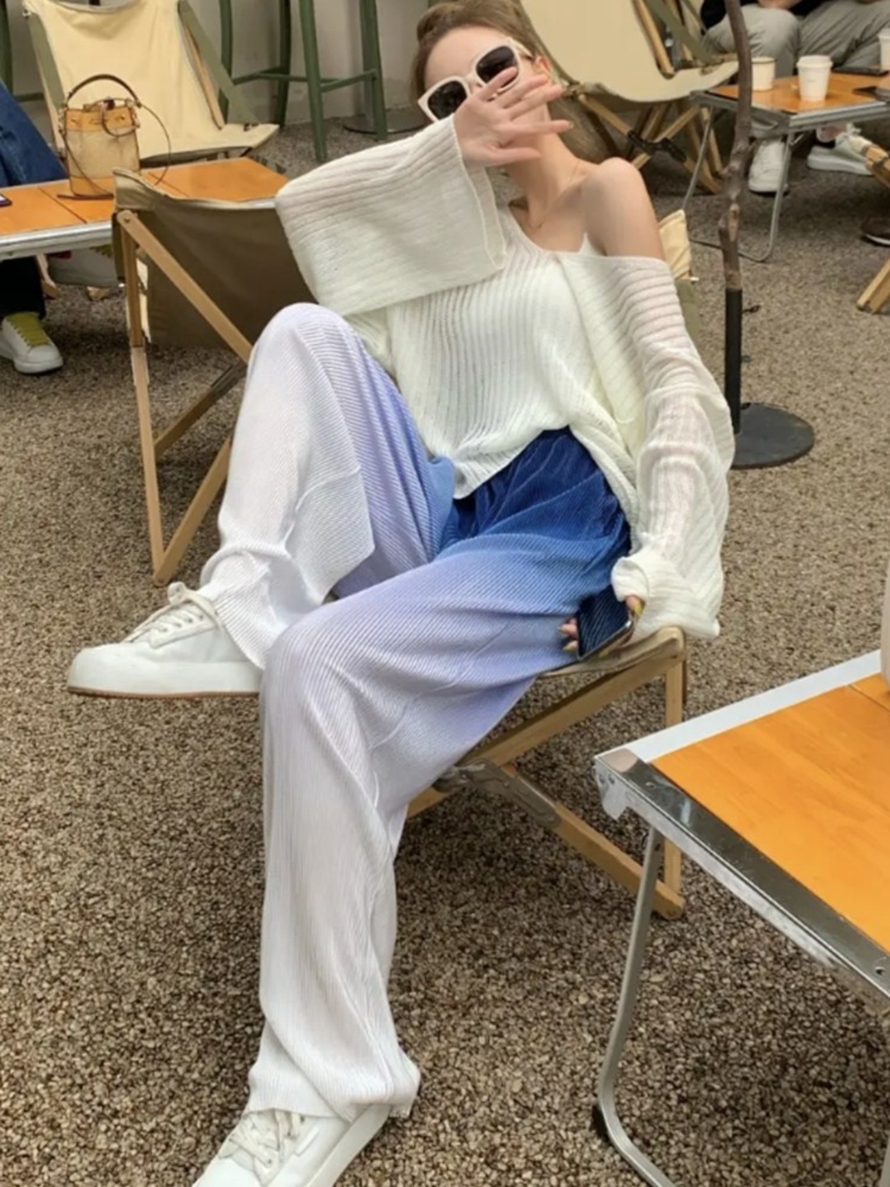 パンツはグラデーションのかかったおしゃれパンツ。