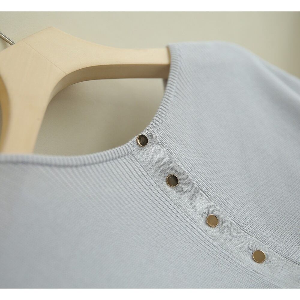 アイスシルクニット 半袖 バックボタン バックシャン ラウンドネック 春夏 大人きれい 20代 30代 40代 tp1093