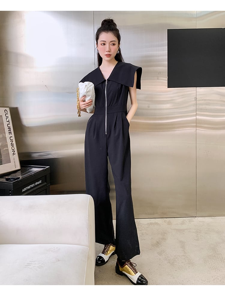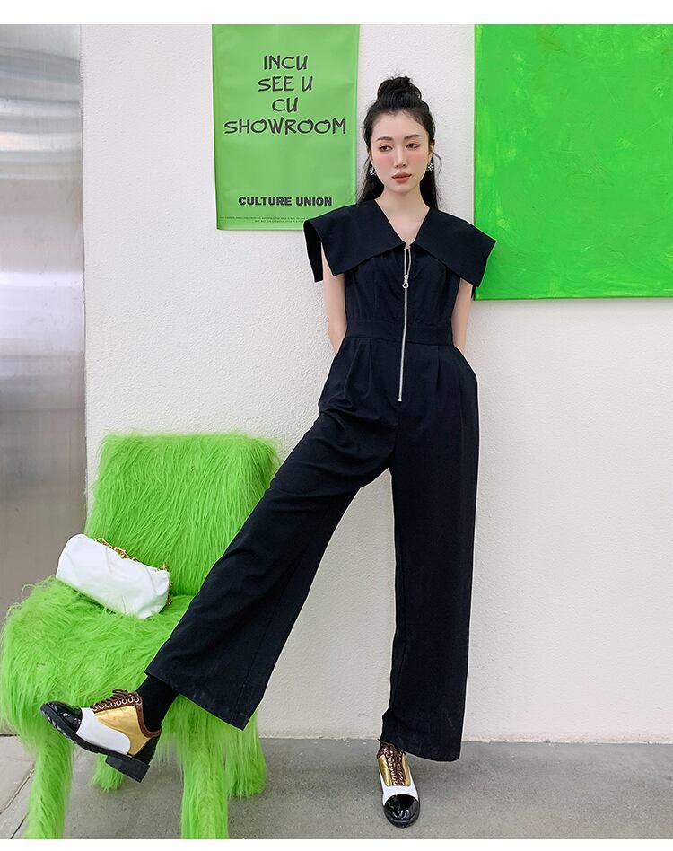 BIGカラー サロペットパンツ オールインワン 大人カジュアル ノースリーブ 春夏 10代 20代 30代 al0148