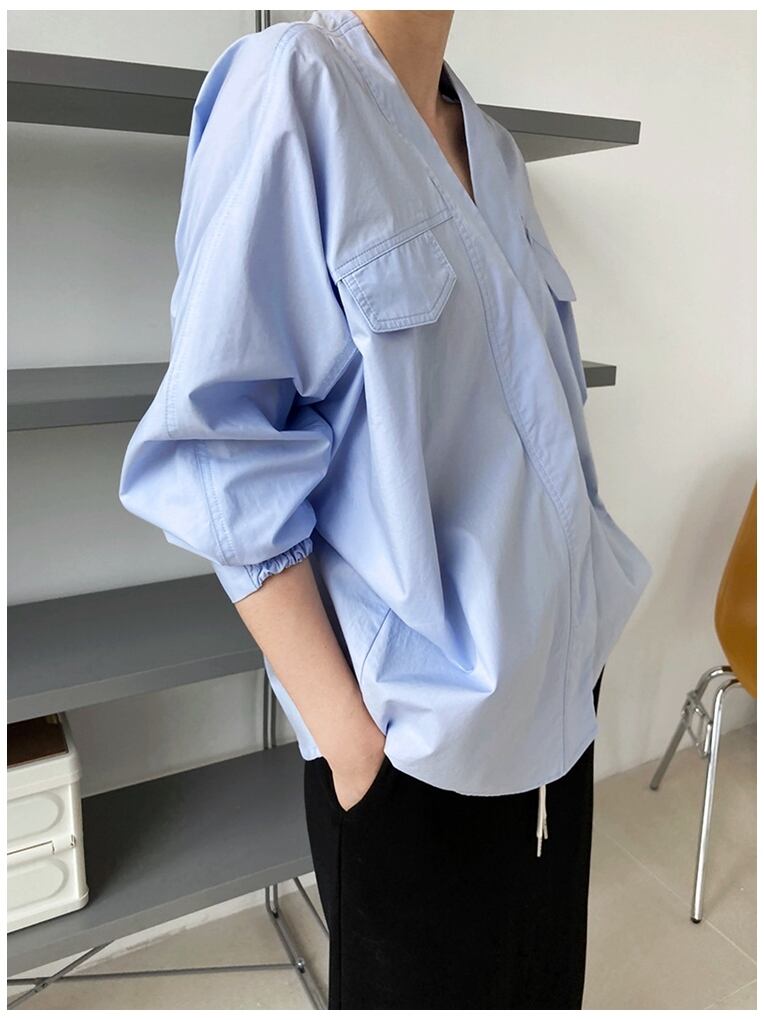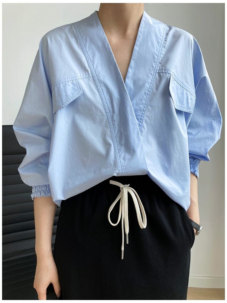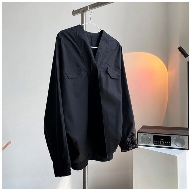 ノーカラーブラウス Vネック 長袖 春夏 大人きれい 抜け感 10代 20代 30代 40代 tp1103