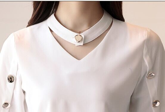 どこか懐かしさを感じるクラシカルな装いのシフォンブラウス。