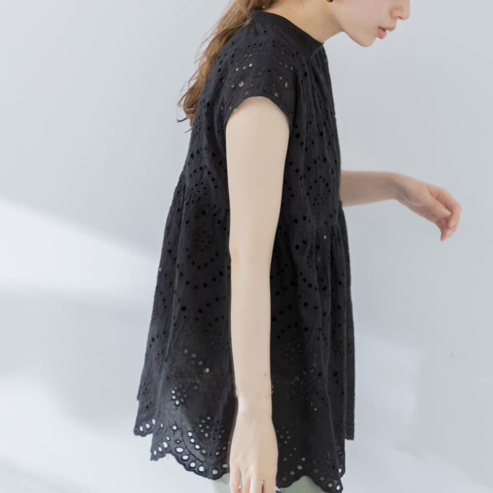 パンチングレースフレアブラウス フレンチスリーブ スカラップ スタンドカラー 大人きれい 春夏 ナチュラルコーデ 20代 30代 40代 50代 tp1112
