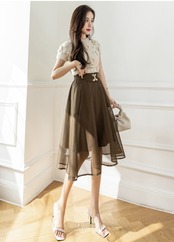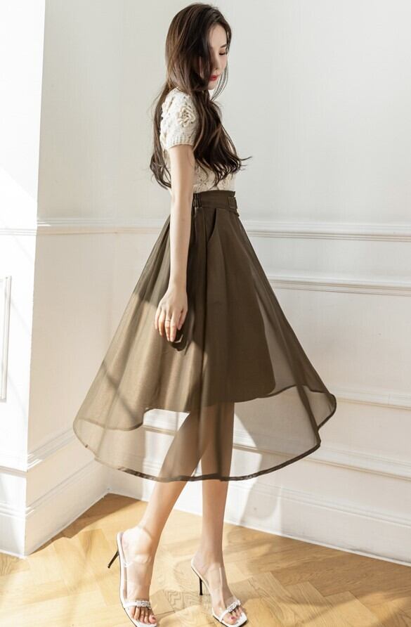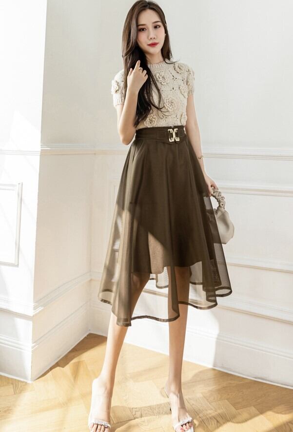 シアーフレアスカート ミモレ丈 シースルー 透け感 ガーリー エレガント 春夏秋 10代 20代 30代 sk0287