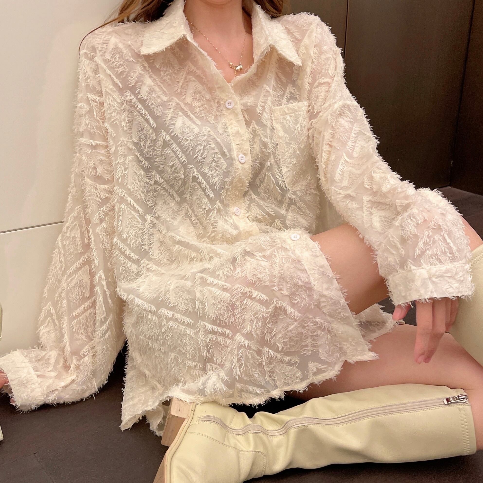 ブラウス 長袖 透け感 シアーシャツ 春夏秋 大人きれい オーバーサイズ 20代 30代 40代 tp1137