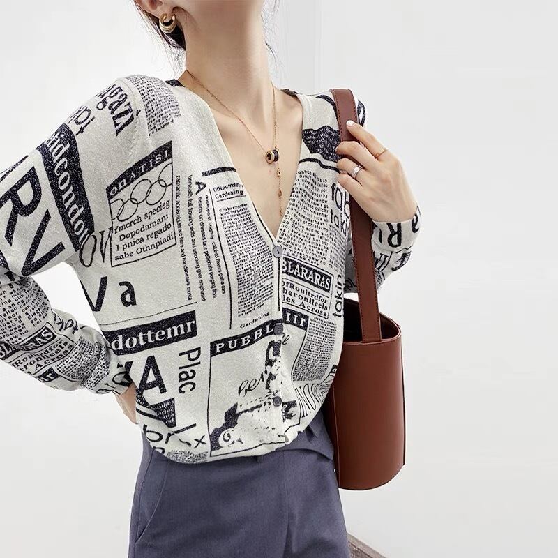 【秋物入荷】英字ニットカーディガン 羽織り物 大人きれい ハイセンス 20代 30代 40代 50代 tp1141