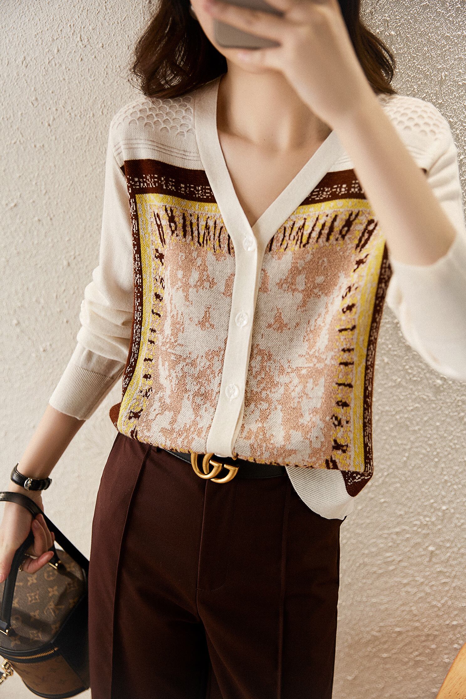 【秋物新作】アート柄ニットカーディガン 長袖 大人キレイ 高見え 20代 30代 40代 tp1145