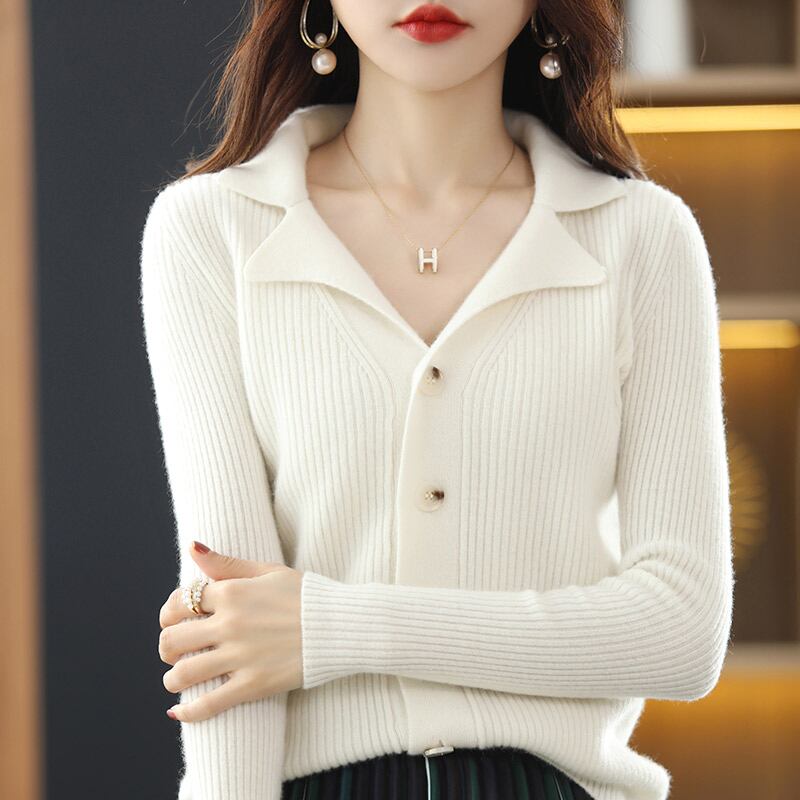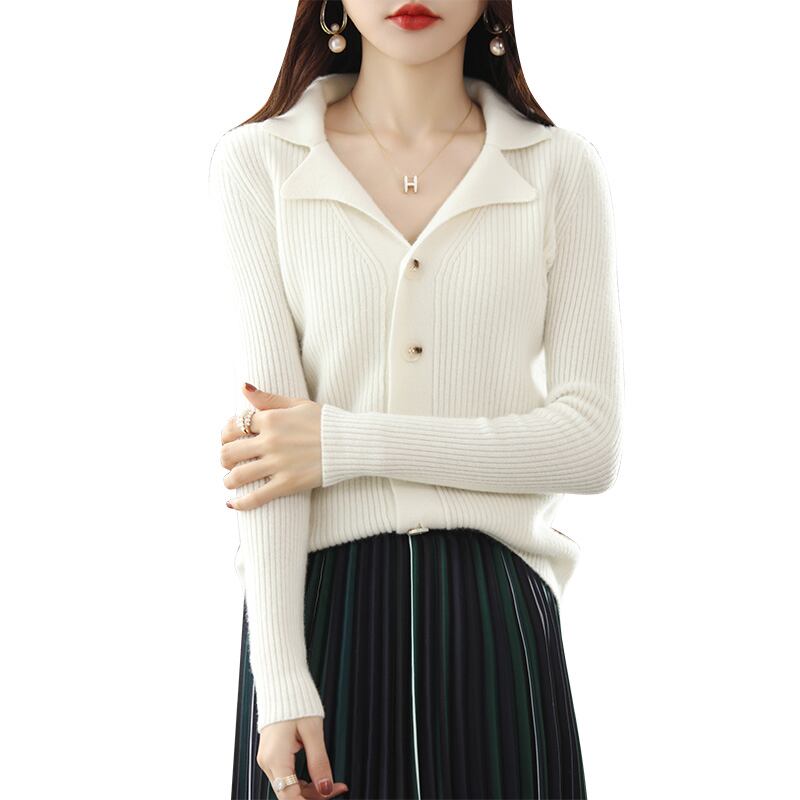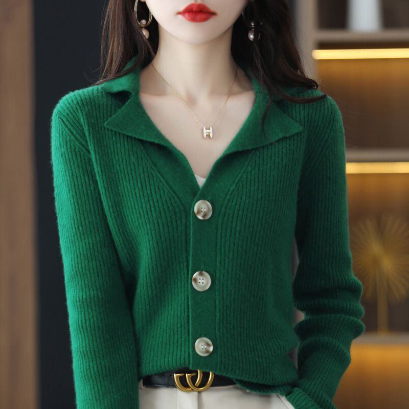 【秋物新作】ウール混ニットカーディガン セーター 襟付き 長袖 ボタン Vネック 大人きれい 20代 30代 40代 50代 tp1149