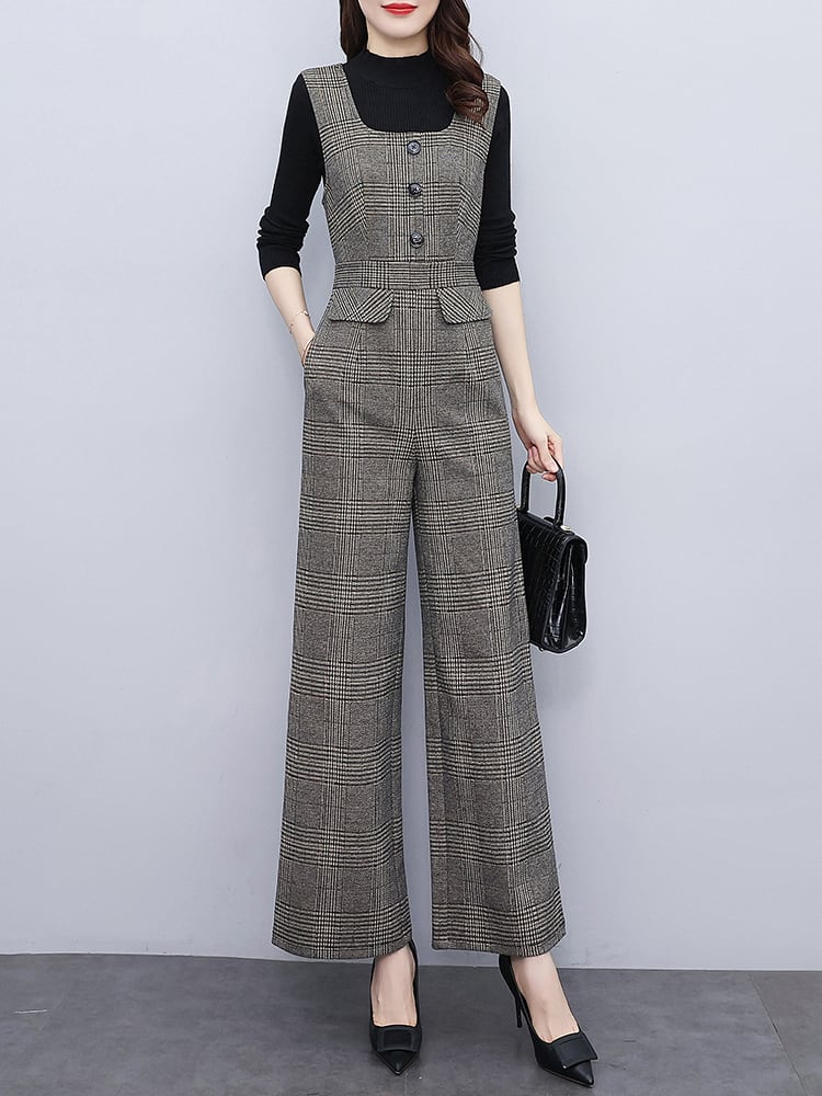 グレンチェック柄オールインワン サロペット ウール 秋冬 大人きれい 20代 30代 40代 50代 al0158