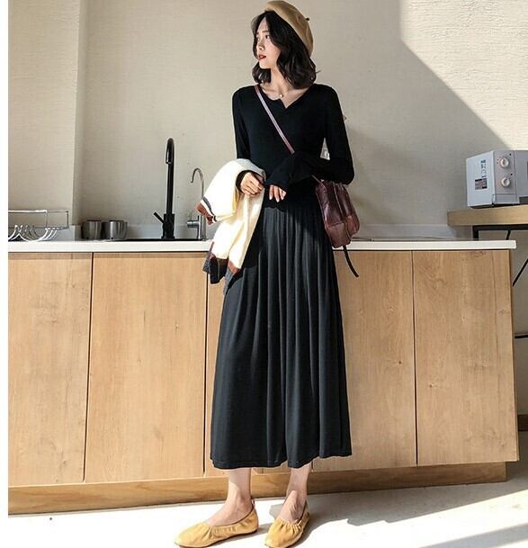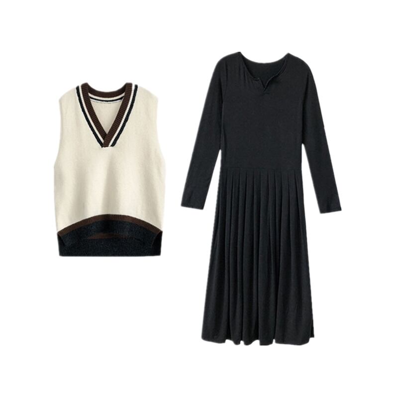 【セットアップ】ベスト プリーツ ワンピース フレア ミモレ丈 長袖 春秋 カジュアル 10代 20代 30代 st0346