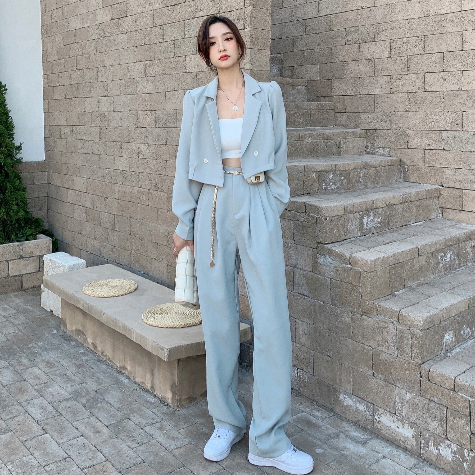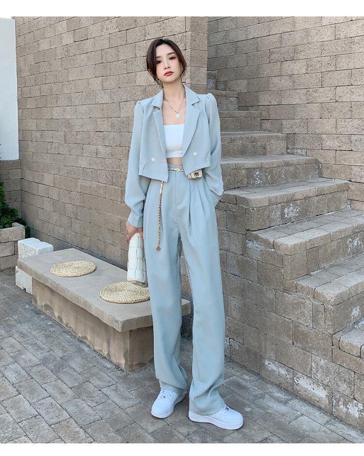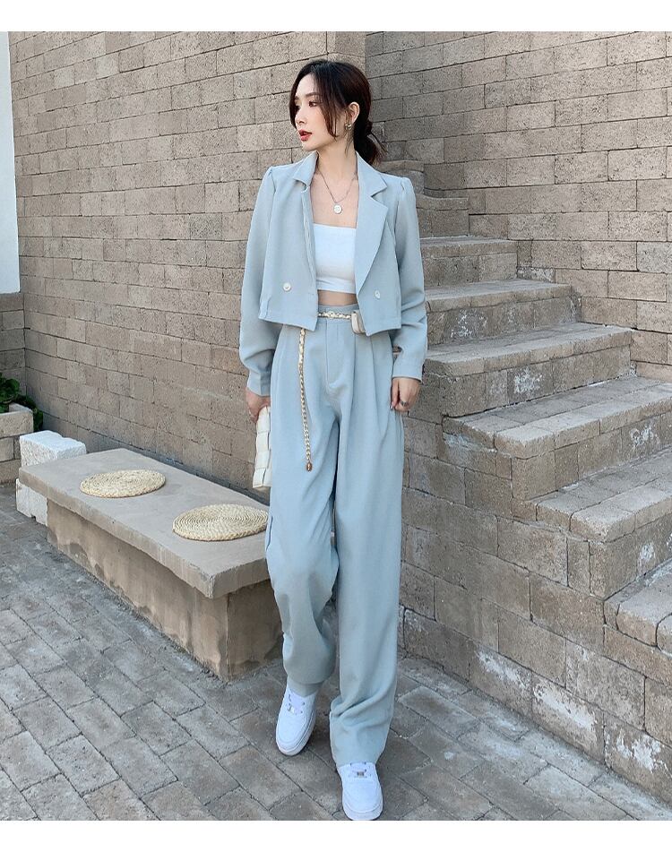 【セットアップ】ショート丈 ジャケット ストレートパンツ 春秋冬 10代 20代 30代 40代 st0353