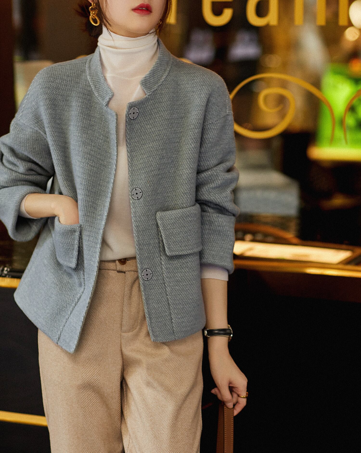 ショート丈コート ジャケット スタンドカラー 秋冬 大人きれい アウター 20代 30代 40代 ot0549