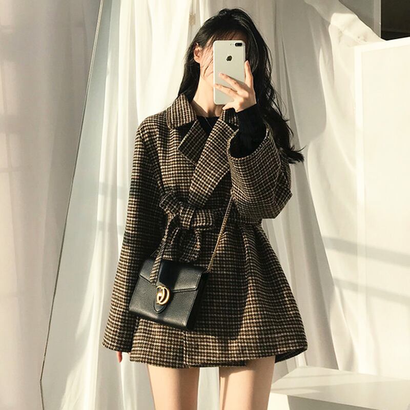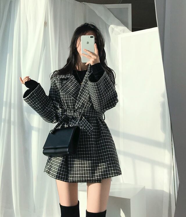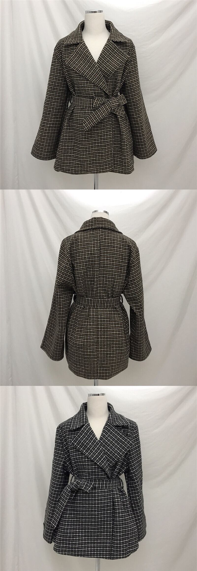 チェック柄ウールコート ハーフコート ミディ丈 秋冬 大人かわいい アウター 20代 30代 40代 ot0574