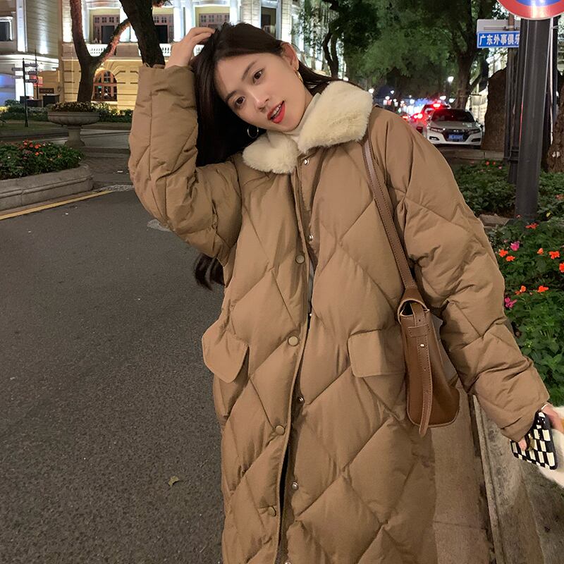 キルティング中綿ロングコート 襟ファー 秋冬 ロング丈 大人かわいい 20代 30代 40代 ot0580