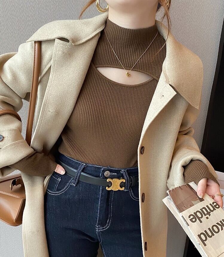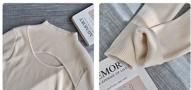 胸あきリブニット ハイネック ニットソー 秋冬 大人きれい 20代 30代 40代 tp1223