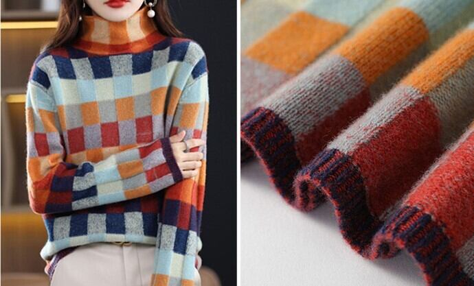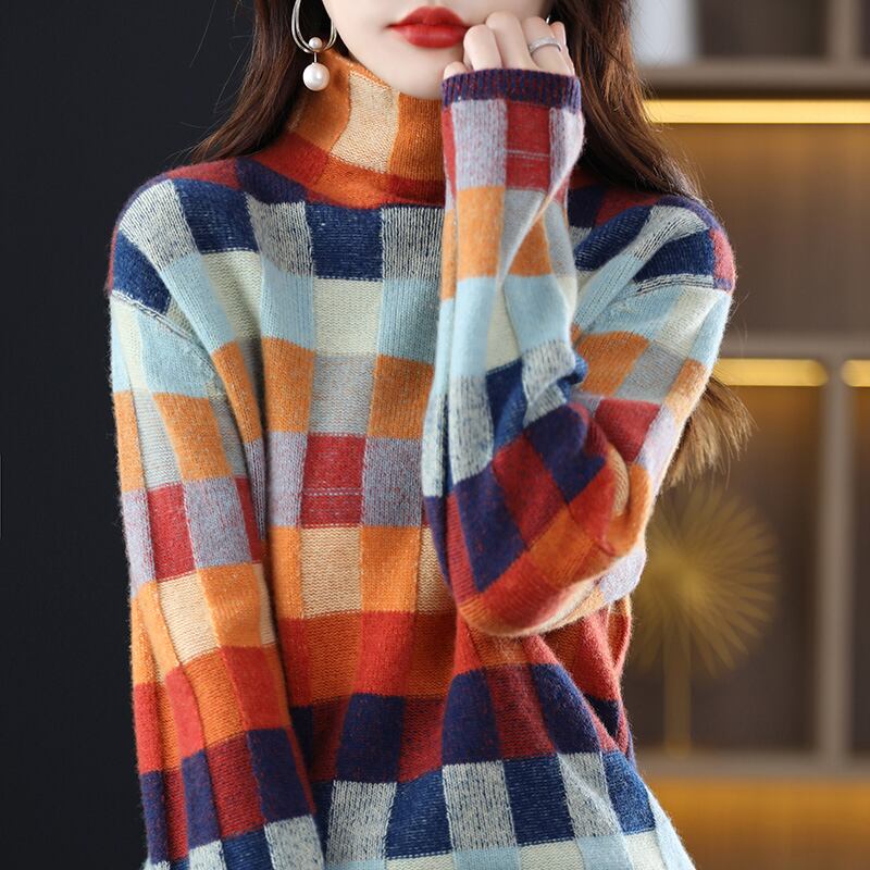 ミックスカラーニット セーター ハイネック ニット秋冬 大人カジュアル 20代 30代 40代 tp1225