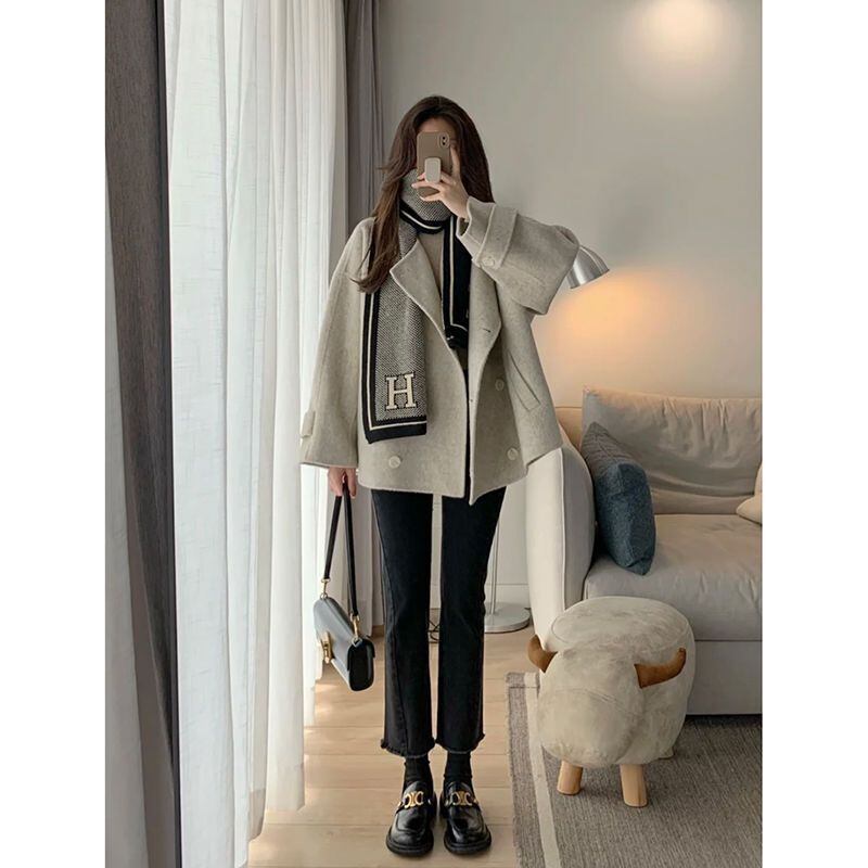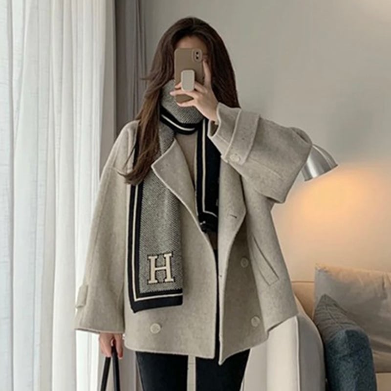 ノーカラーショート丈コート オーバーサイズ 秋冬 ジャケット アウター 20代 30代 40代 ot0601