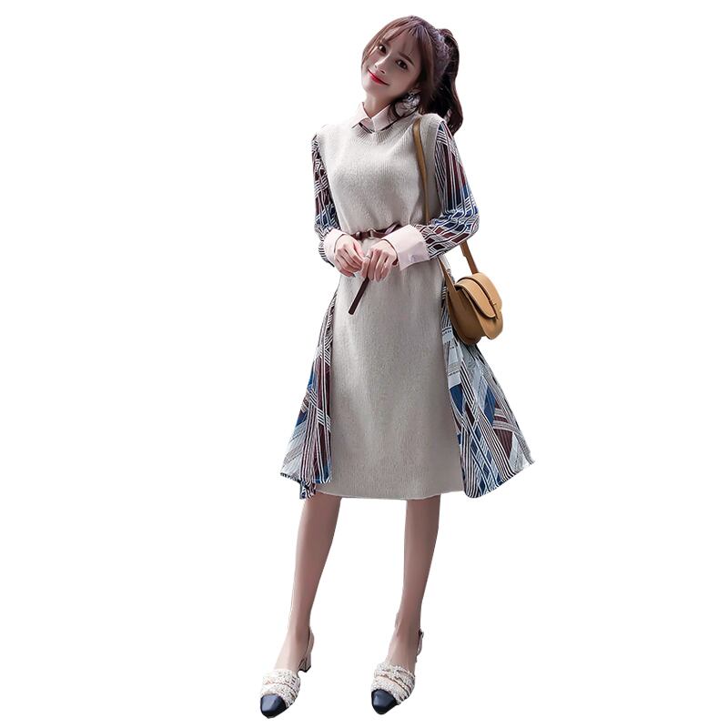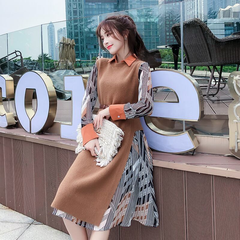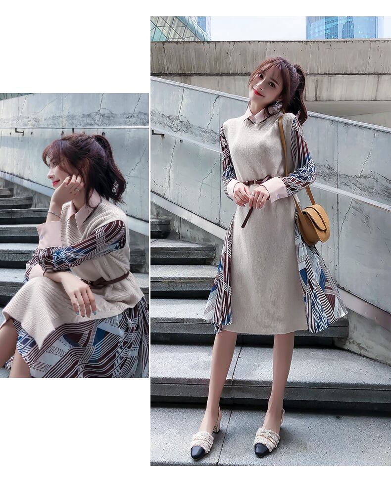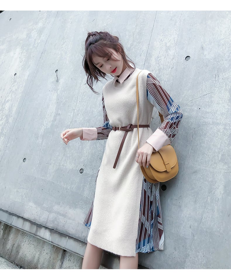 【セットアップ】シフォンワンピース ロングジレ ベスト レトロかわいい クラシカル 長袖 春秋 大人きれい 20代 30代 40代 op0784