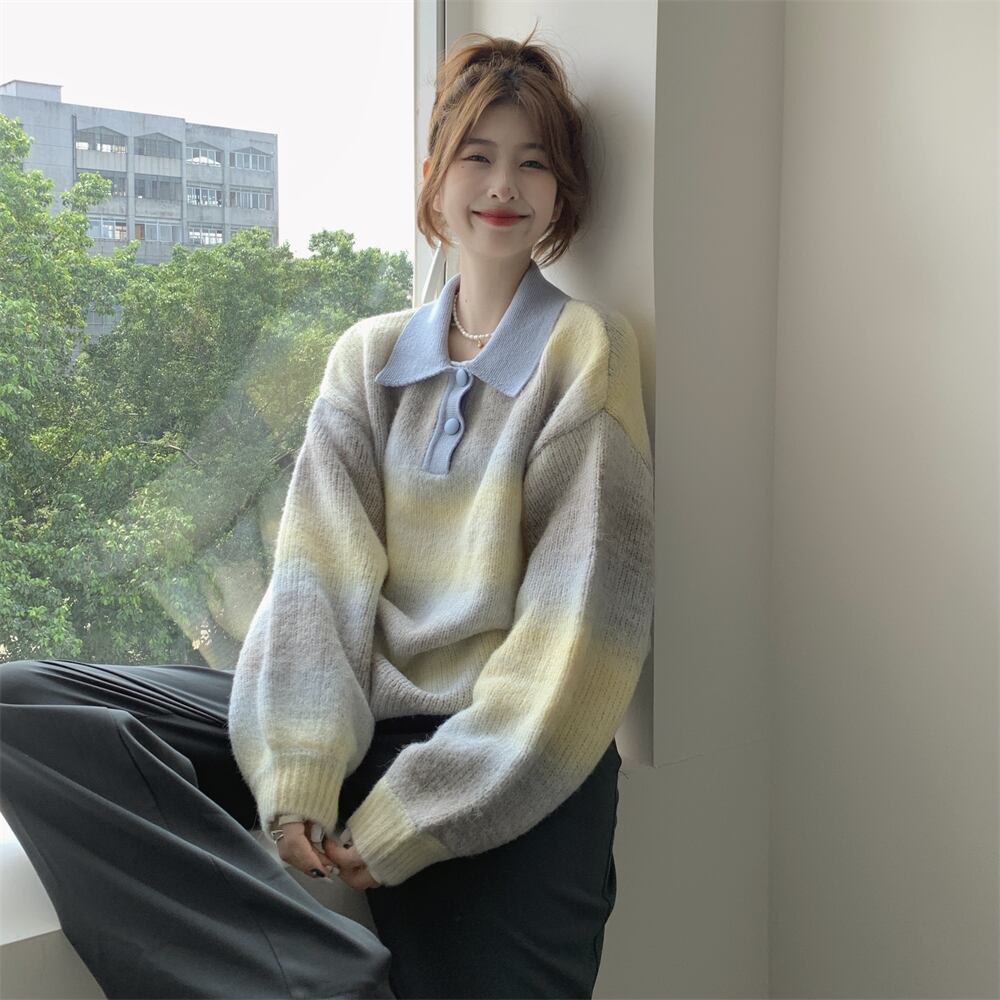 襟付きセーターニット マルチカラー 長袖 秋冬 カジュアル 大人かわいい 20代 30代 40代 tp1250