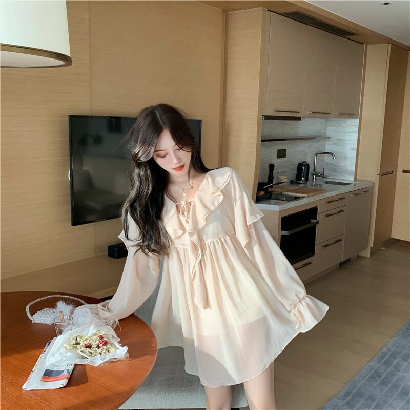 シフォンティアードブラウス Vネック 長袖 秋冬 大人かわいい 20代 30代 40代 tp1253