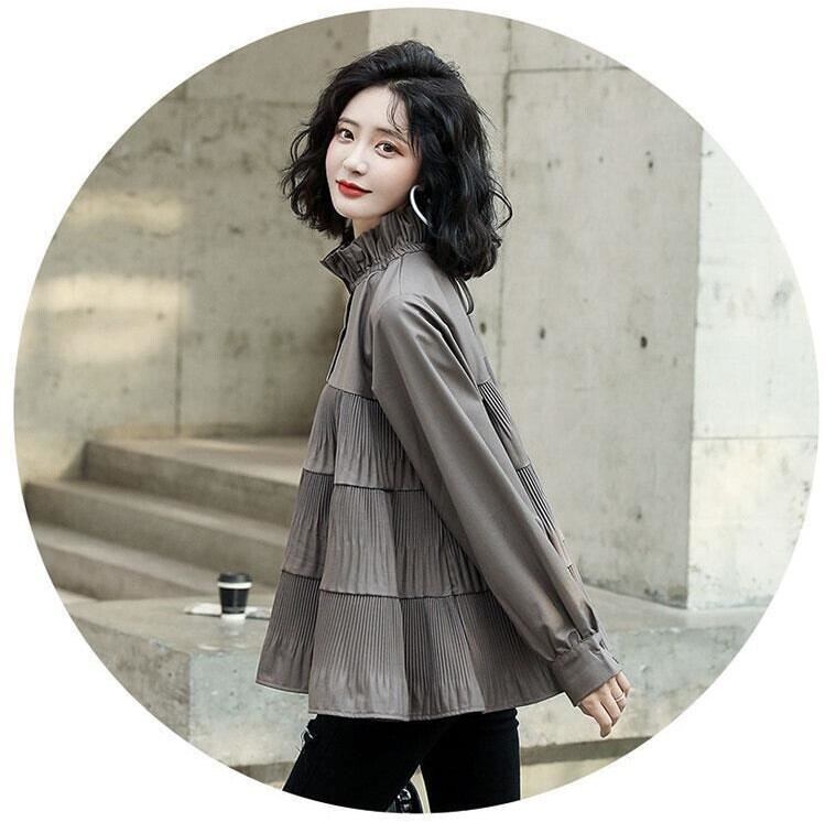 ギャザーブラウス ティア-ド スタンドカラー Aライン 長袖 秋冬 大人きれい 20代 30代 40代 tp1254