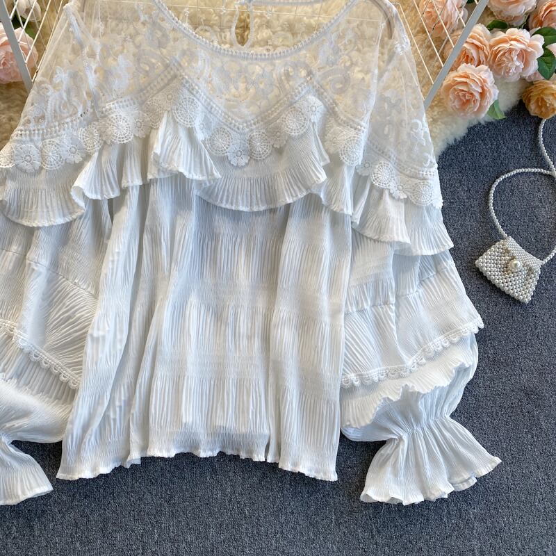シャーリングブラウス シアー チュール 透け感 ティアードフリル 春夏 ラウンドネック 大人かわいい 10代 20代 30代 40代 tp1271