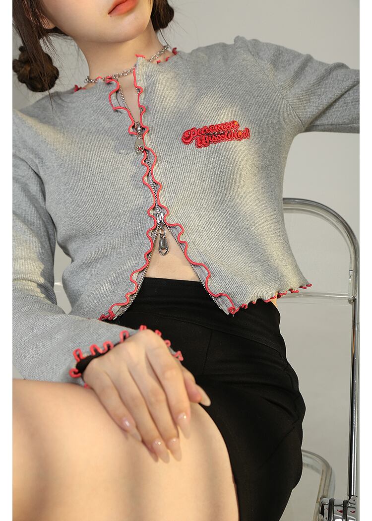 ダブルジッパー リブニット カーディガンジャケット バイカラー パイピング 春秋 大人カジュアル 20代 30代 40代 tp1279