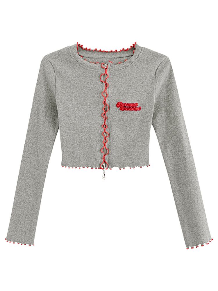 キュートなサーモンンピンクのパイピングにダブルジッパーでカジュアル感もプラス。