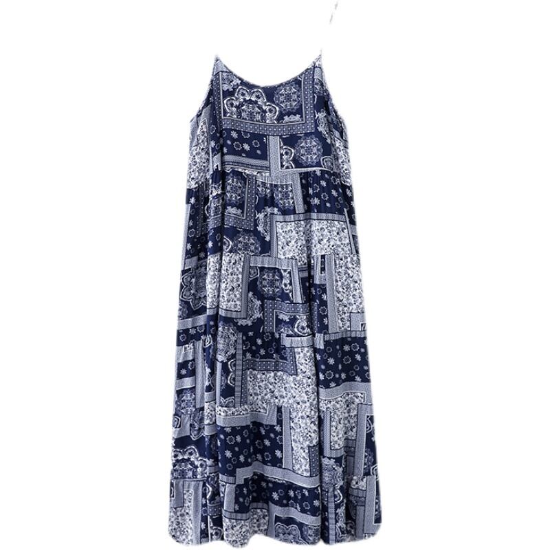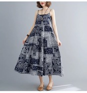コットンリネンキャミソールワンピース エスニック柄 ミモレ丈 春夏 大人きれい フレア 20代 30代 40代 op0816