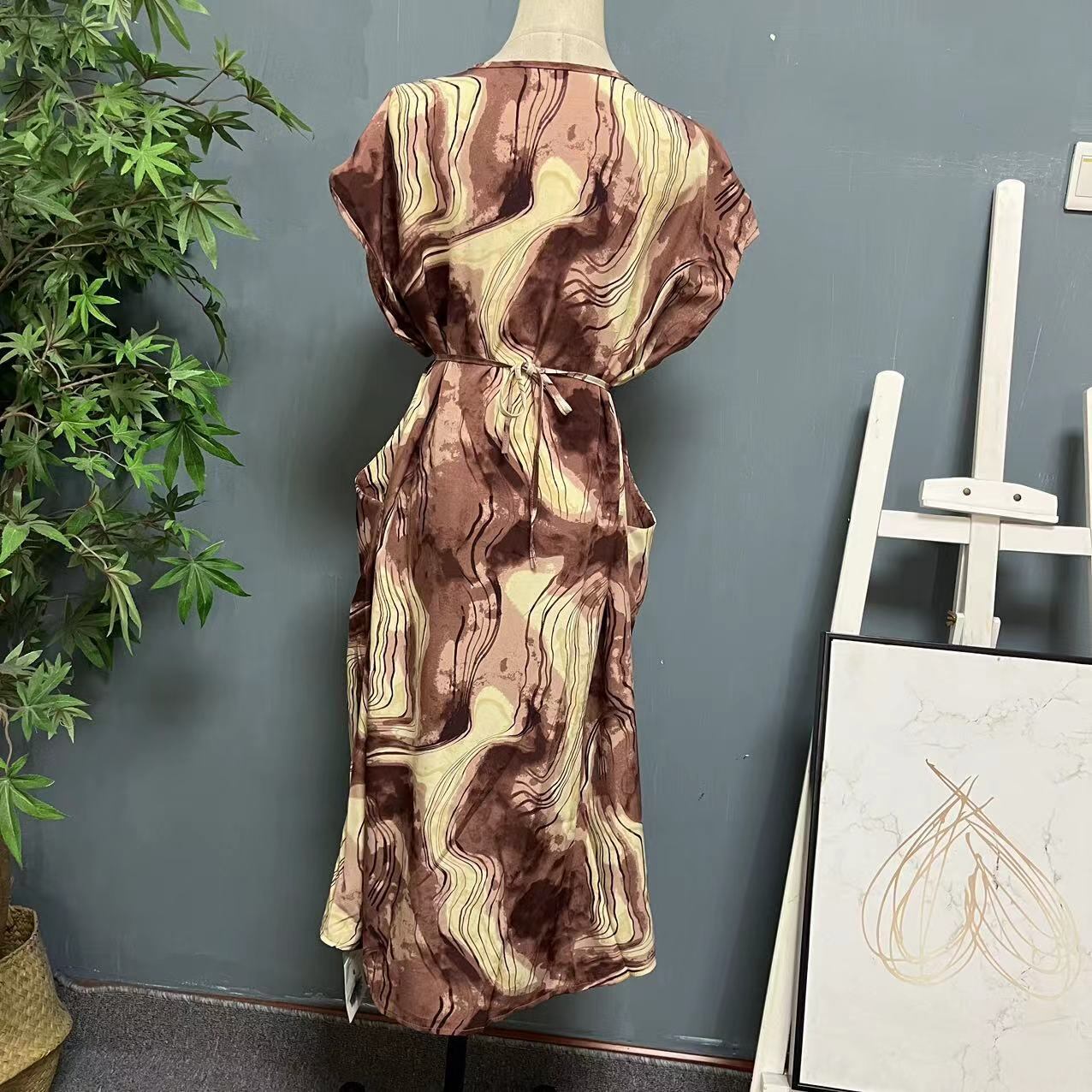 プリントワンピース Vネック フレアスリーブ 春夏 大人きれい レトロ クラシカル 20代 30代 40代 op0824