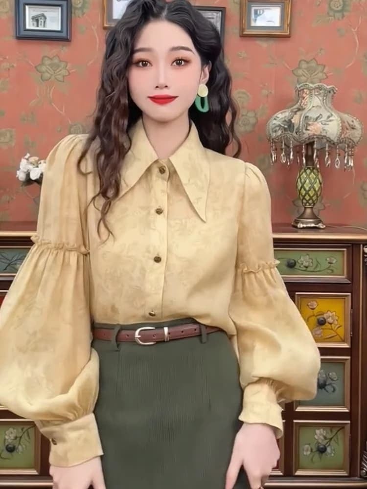 【秋物入荷】ランタンスリーブブラウス 袖コンシャス シャツ 襟付き 秋 長袖 大人きれい 20代 30代 40代 tp1309