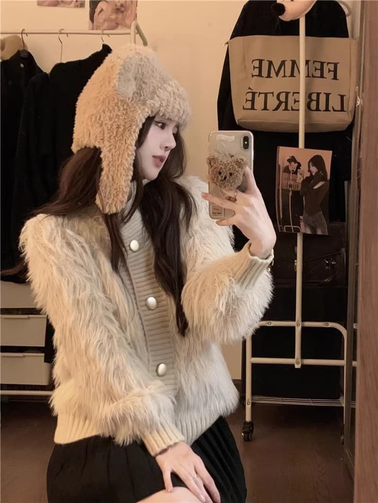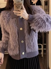 テディファー コンビカーディンガン プルオーバー ニット 長袖 大人かわいい 秋冬 20代 30代 40代 tp1343