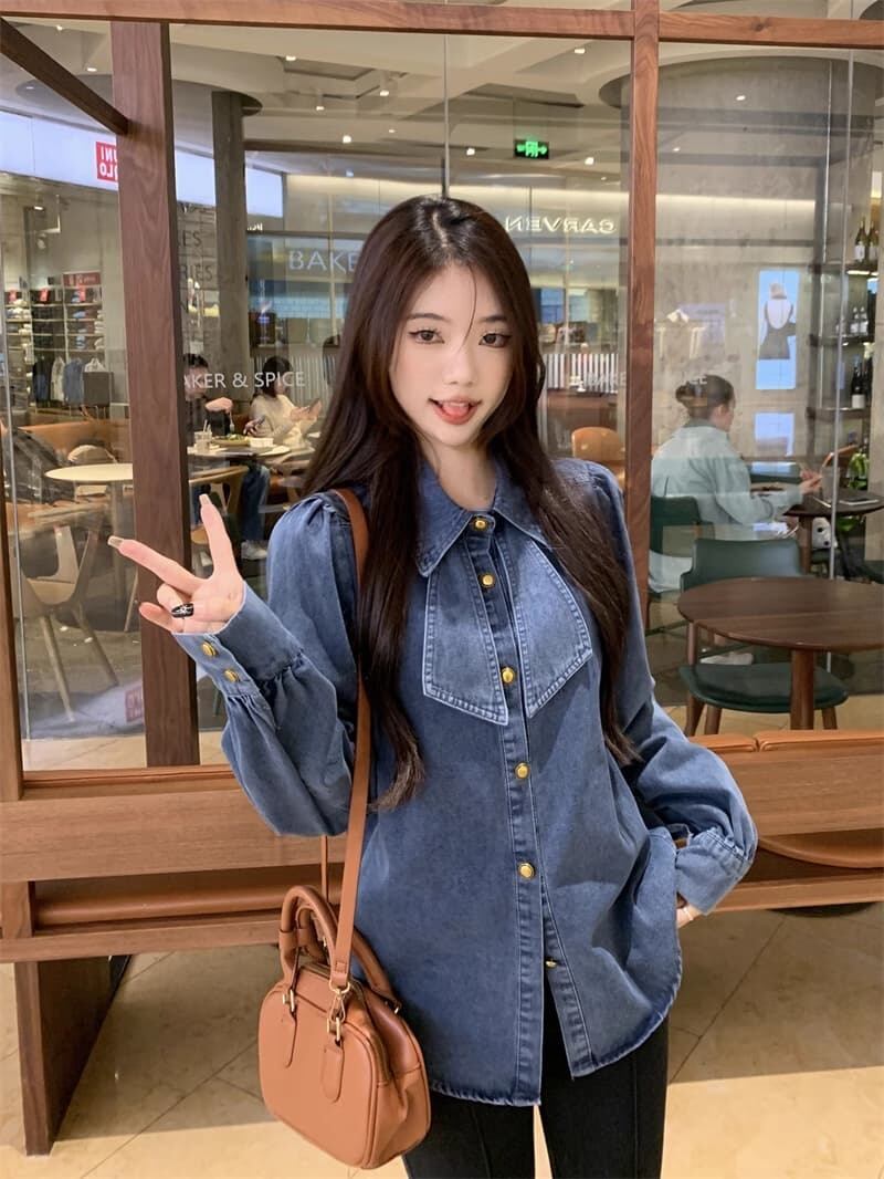 デニムシャツ ダンガリーシャツ リボンタイ 春秋 長袖 大人カジュアル 20代 30代 40代 tp1350