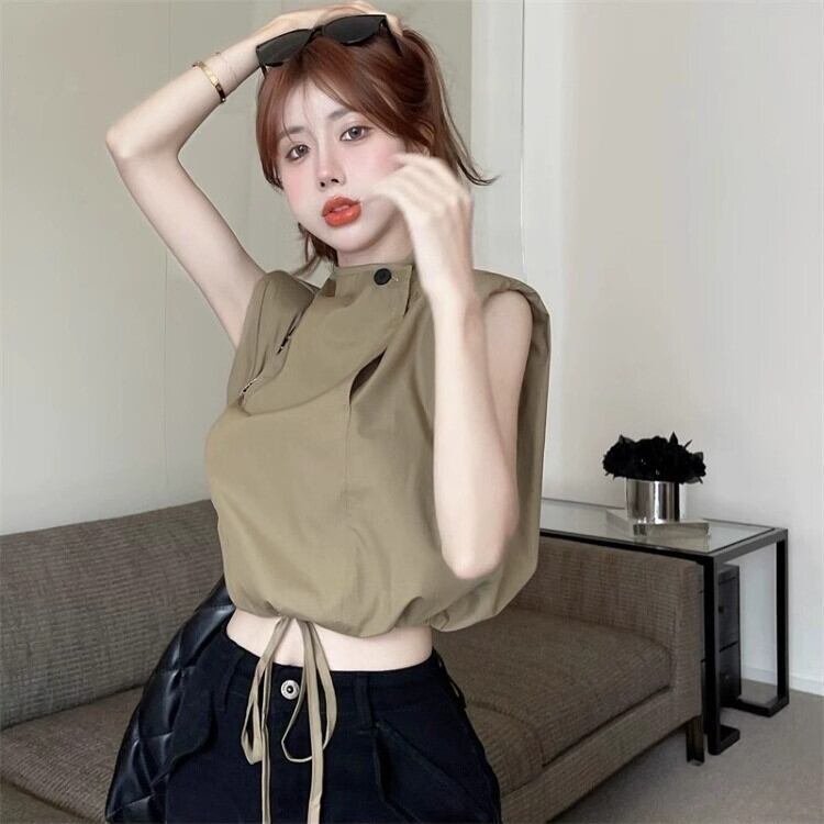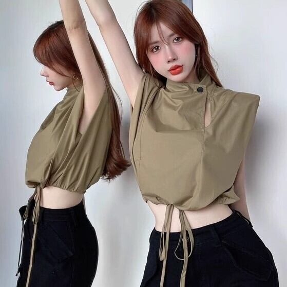 スタンドカラー アシンメトリーブラウス パフスリーブ シャツ ショート丈 大人きれい 春夏 20代 30代 40代 tp1375