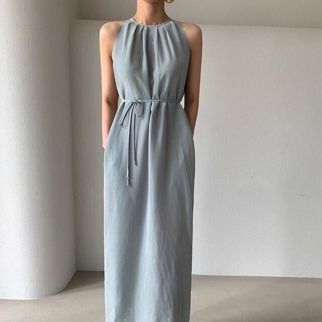 ホルターネックワンピース Iラインワンピース ノースリーブ 大人きれい ロング丈 春夏 op0899